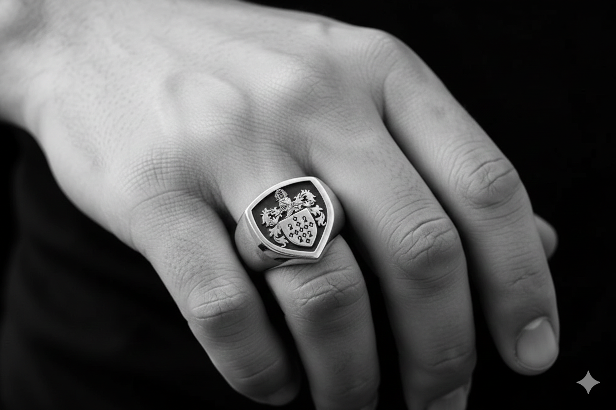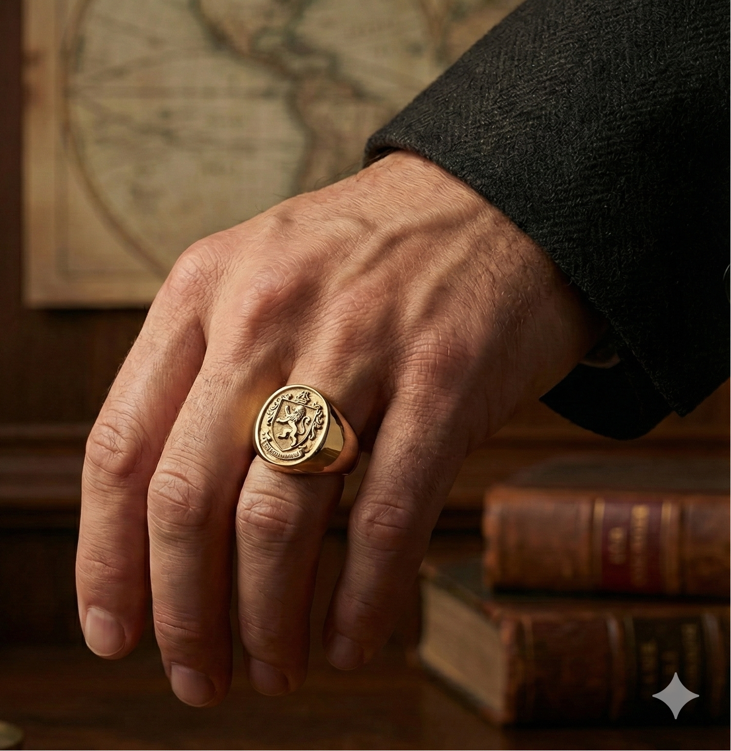 Bespoke signet rings, deeply engraved with your family crest, university seal or club emblem.